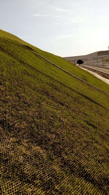 Se trata de geomallas de refuerzo flexible y tridimensional fabricadas con poliéster de alta tenacidad y baja fluencia. Un recubrimiento polimérico especial protege la geomalla de la acción de los rayos ultravioleta del sol y de los daños mecánicos.